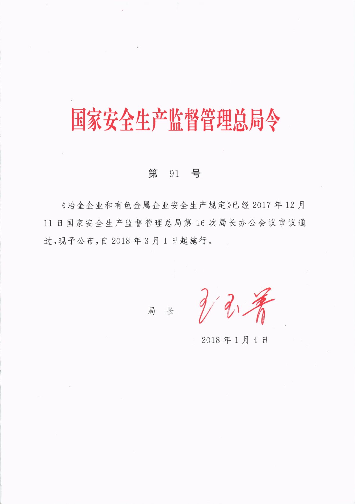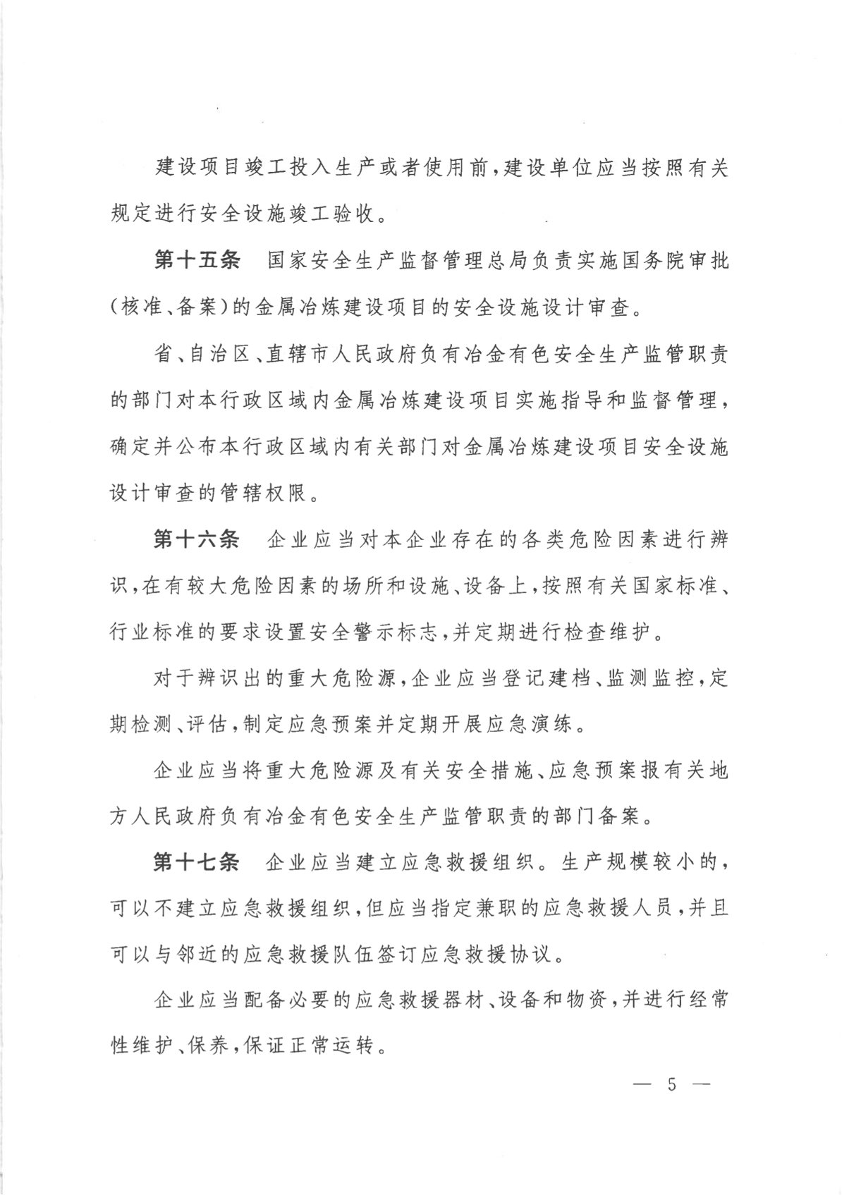 冶金企業(yè)和有色金屬企業(yè)安全生產(chǎn)規定