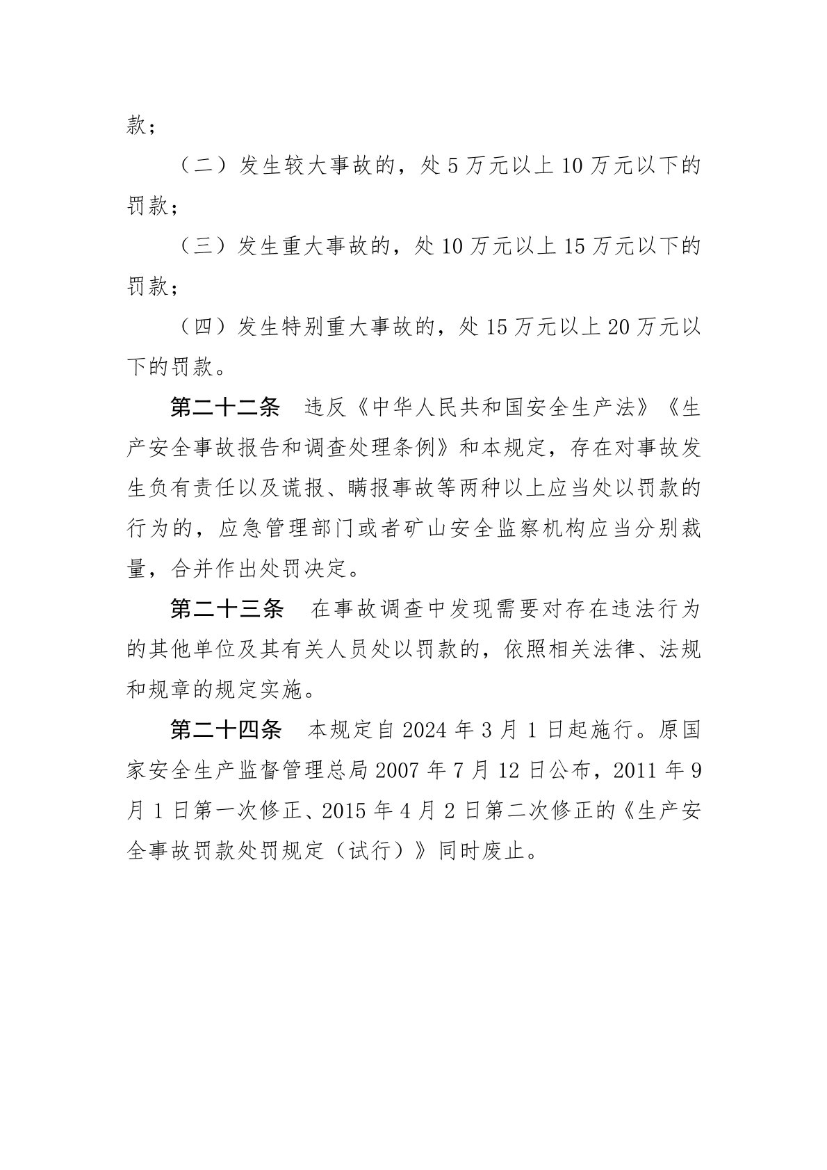 生產(chǎn)安全事故罰款處罰規定