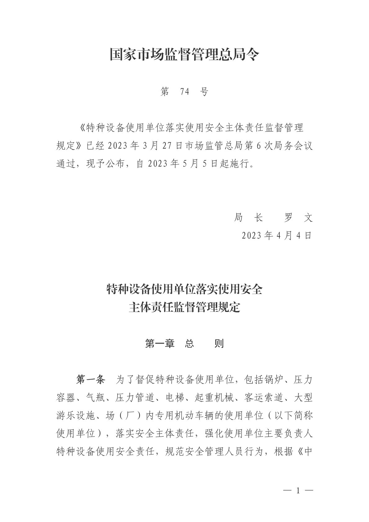 特種設備使用單位落實(shí)使用安全主體責任監督管理規定
